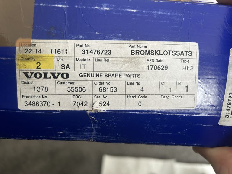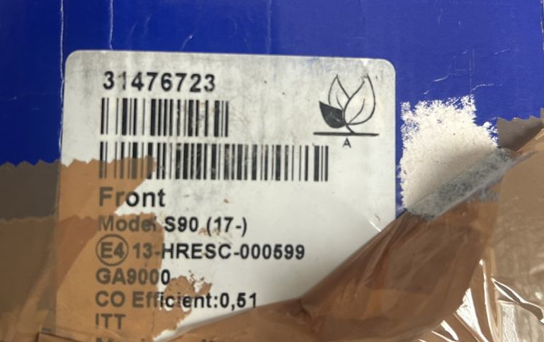 Got these genuine Volvo front brake pads for my 2020 S90, but unfortunately don’t fit. There’s around 3 different versions of pads and these are too big….approx 180 mm long x 75 mm wide.
