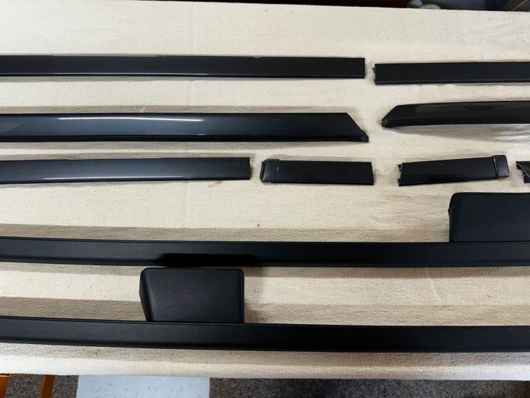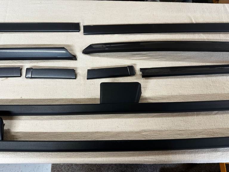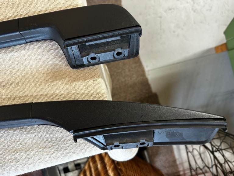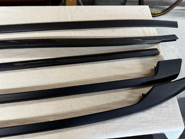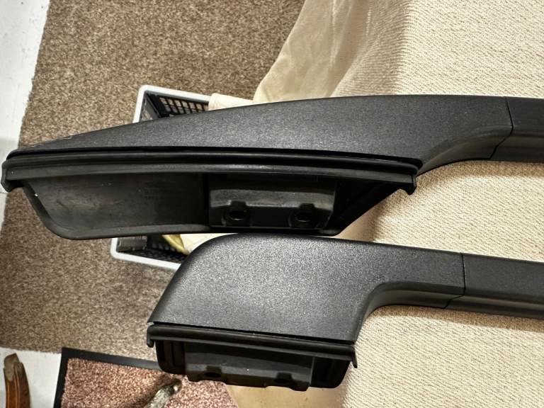 These were removed in 2006 from a 2004 V70R – see photos. They are in wonderful condition and come with unmarked colour painted infill trims and all fixings including the rubber pads the rails sit on. The car at the time had covered only 4,000 miles and these have been in storage since. The car is now sold and so grab a bargain as the painted infill trims are very expensive in their own right. The painted trims have slight indents to the ends which are caused by the roof rail body and these are covered when fitting. All normal. These rails fit 2001 - 2007 V70's but check your car matches the one in the photo. Due to the length of this item, I currently have collection only which can be Leigh on Sea, Essex or Stowmarket in Suffolk. Postage could be arranged by the purchaser as i am happy to pack up. Thank you for looking.