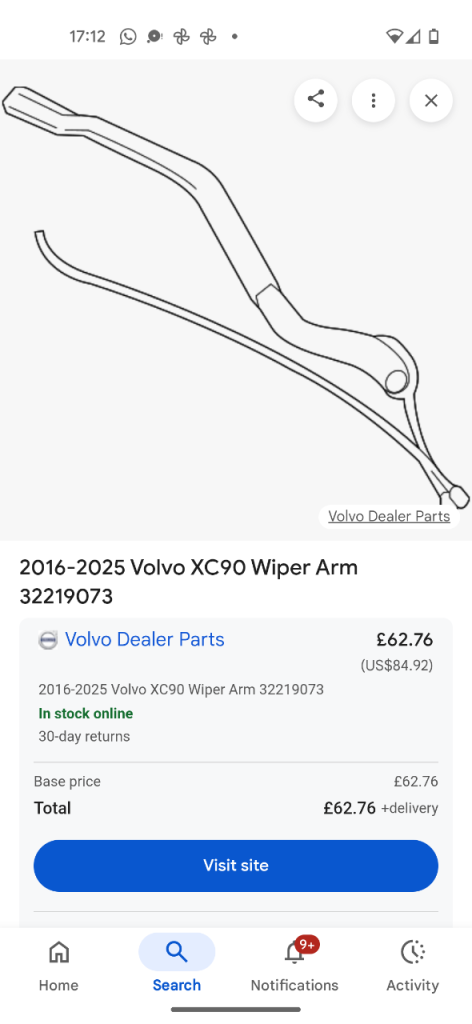 Volvo xc90 windscreen wiper arm for drivers side, this is brand new it was ordered by mistake as we needed the other one but packet was open so it would not return. Cost over £65 genuine part £50 ono