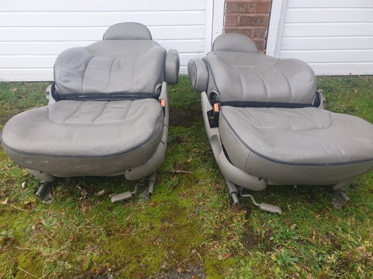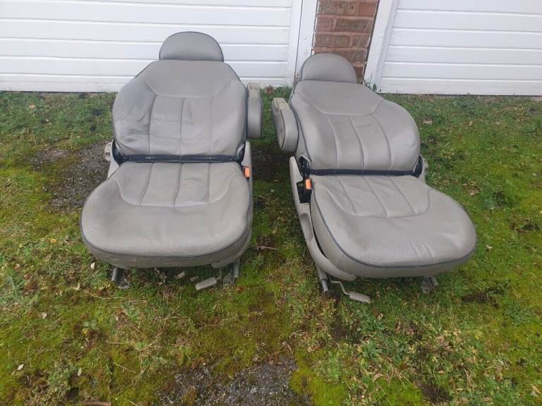 VW SHARON CAPTAIN FRONT SEATS, AND WITH ARMRESTS AND SWIVEL BASE IN LEATHER AND WOULD BE IDEAL FOR CAMPER VAN, PLEASE NOTE WILL NOT SELL THE SWIVEL BASE SEPARATELY.THIS INTERIOR COMES IN FULL LEATHER IN BEIGE PLEASE NOTE THAT THERE'S