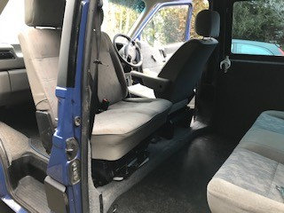VW T4 1999: Swap my double passenger front seat in Inca in good condition and with a Kiravans Swivel base - for your single Captains Front Passenger Seat with cash adjustment - must also be in good condition and recline. Inca preferred.