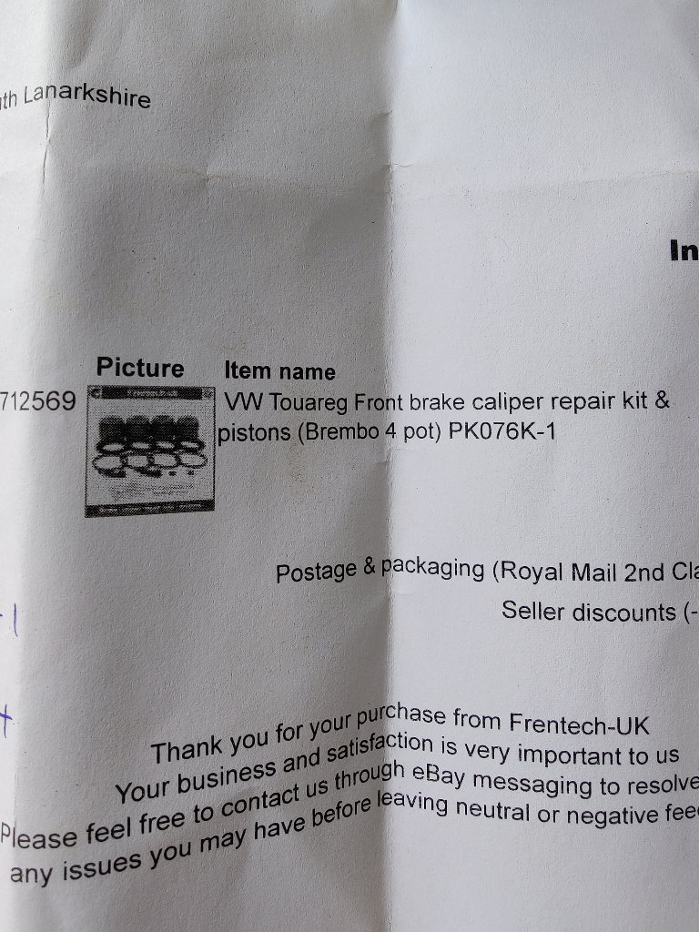 VW Touareg front brake caliper repair kit pistons and seal kit ( partial)