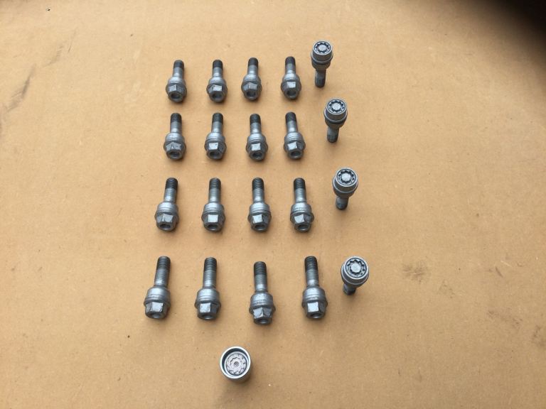 VW TRANSPORTER GENUINE USED LOCKING WHEEL NUT SET TO SUIT TRANSPORTER T5 - T6 - T6.1 - This is a full set including 16 x Bolts 4 x Locking Bolts and 1 x Wheel Nut Key.
