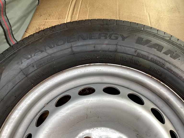 Nano Energy Tyres on VW Crafter 5 stud wheels. 205/75R 16c Nano Energy van tyres (made in Japan ) . I understand from the Web they will also fit VW T5