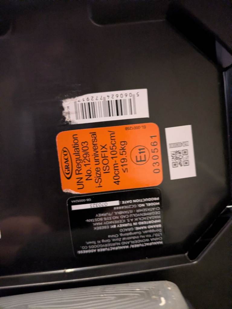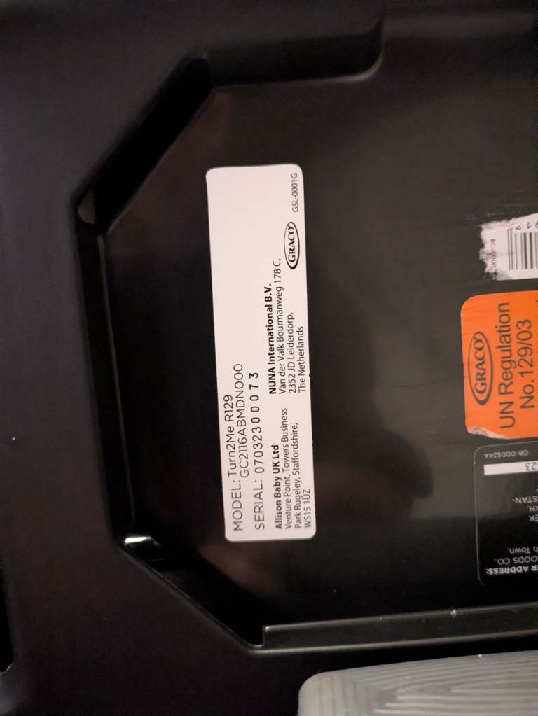 Graco child's car seat isofix 360 turn. Never been in an accident. See photos for model no. details. Outgrown by present user.