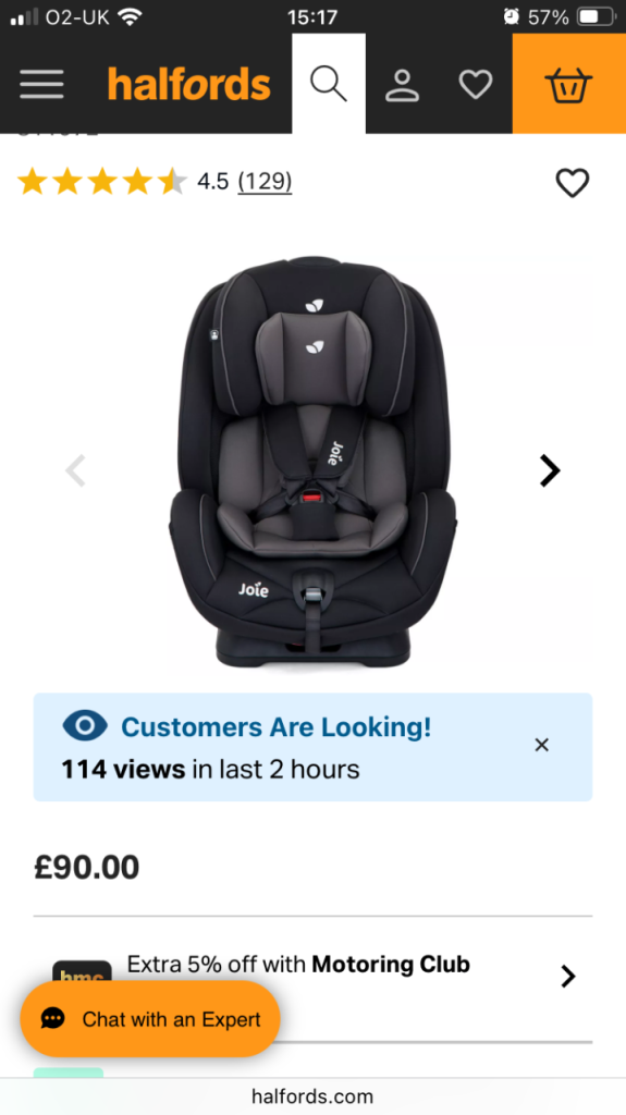 Joie Stages car seat in very good condition. Was used in a second car so very rarely used and only ever for short journeys. Can be from 0 years to 12 years but the padding for the new born age is missing.