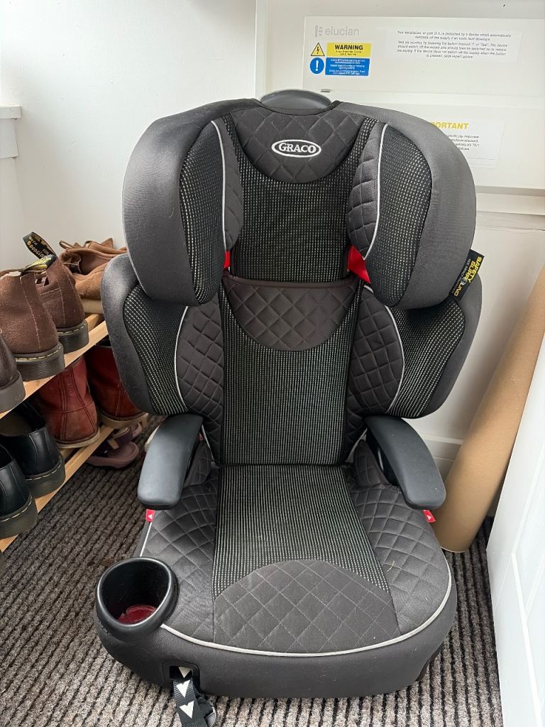 Excellent condition. Lightweight and portable car child restraint suitable for ages 4 to 12 years up to 150 cm tall and weighing between 15kg and 36kg. Really useful for travelling.
