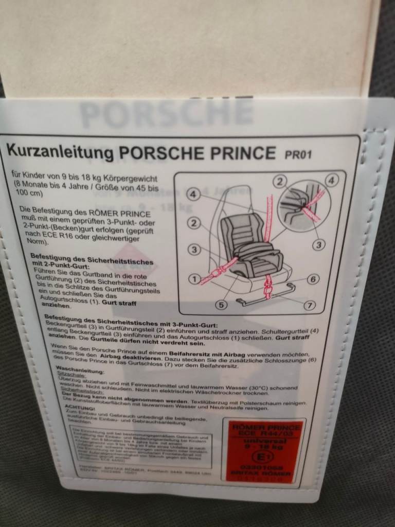 Genuine Porsche Prince Pro 1 Child Car Seat (Group 1) - two available - price is for one.