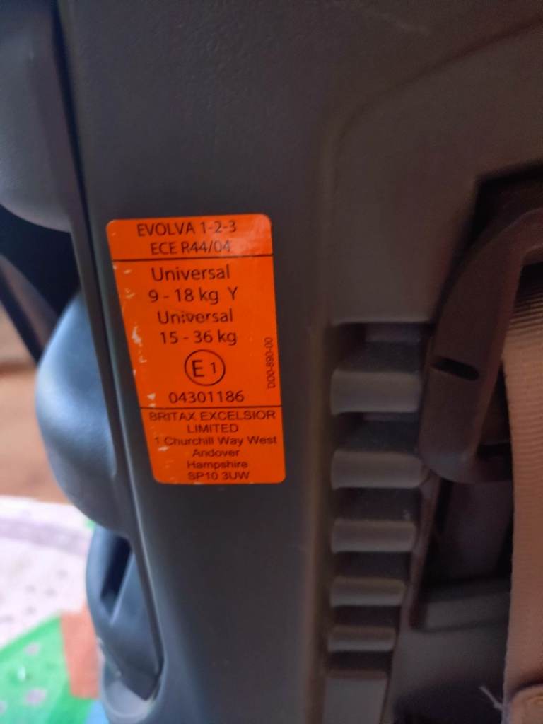 Britax Evolva 1-2-3 car seat in good, clean condition.