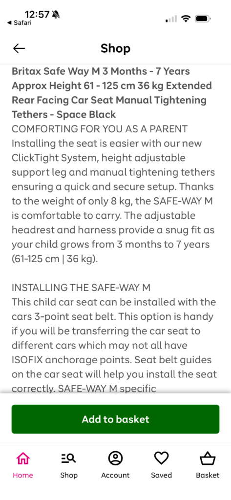 Posting for 10+ yearsBritax Safeway M rear facing car seat