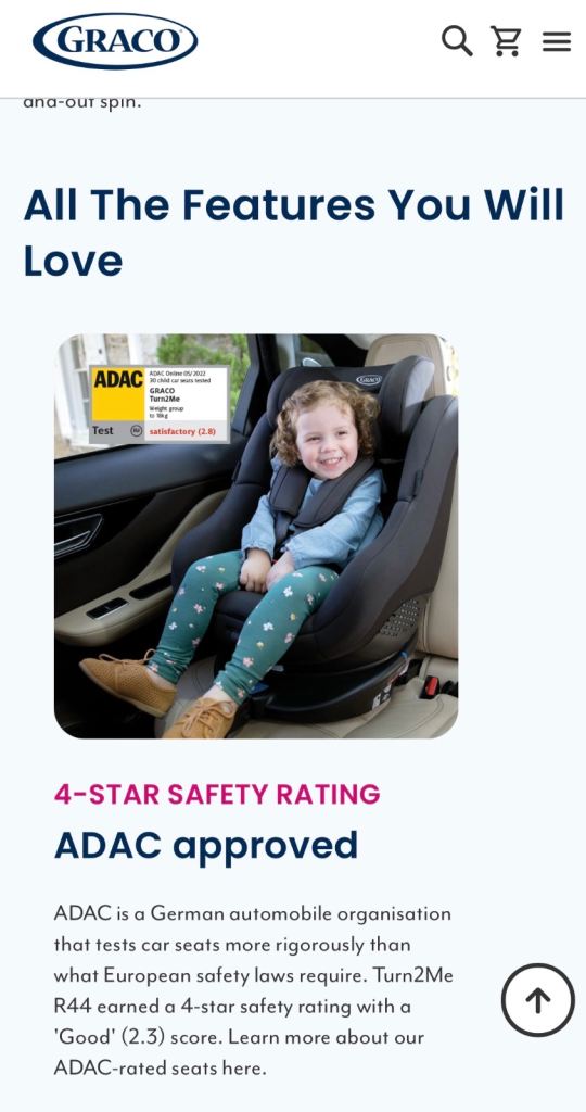 The Turn2Me™ R44 360° rotating ISOFIX car seat makes every journey worry-free. Earning a 'Satisfactory' (2.8) overall rating from ADAC and a 4-star safety rating with a 'Good' (2.3) score, this car seat has been tested beyond normal European standards to ensure every journey with your little one is the safest it can be. Its effortless, single-handed swivel makes for easy ins and outs as you juggle shopping bags, changing bags, and whatever else you’re balancing.