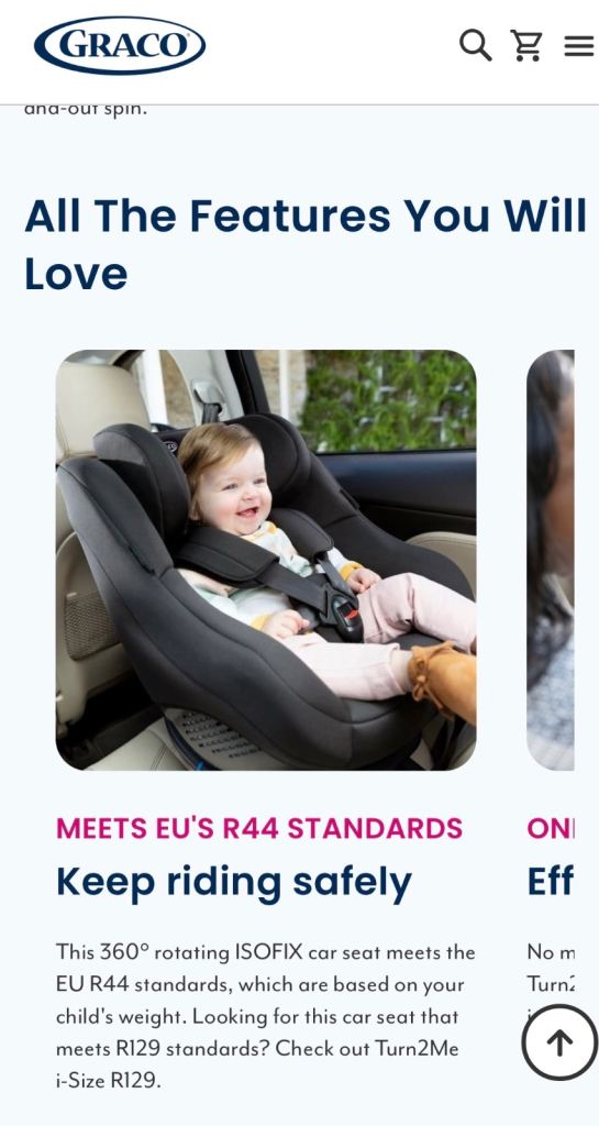 Turn2Me R44 is based on the EU's R44 standards. If you are looking for a version of this car seat that meets R129 standards, we encourage you to discover Turn2Me i-Size.