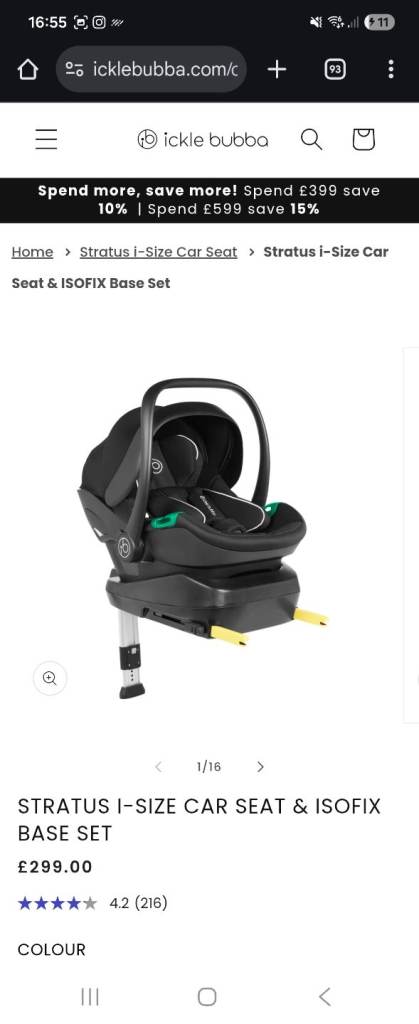 Selling Ickle Bubba Stratus i-Size car seat with base.