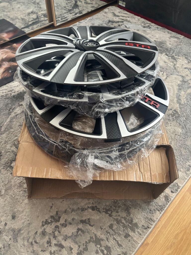 16inch carbon look wheel trims, with optional ford badges, new still in box, will fit any cars