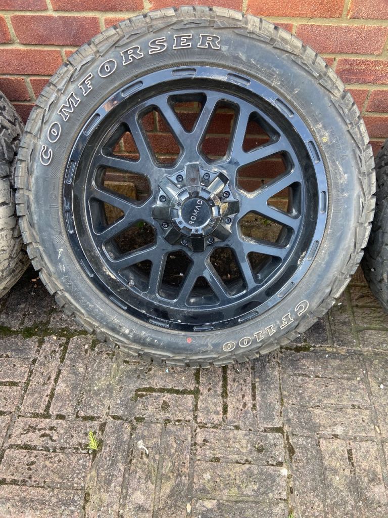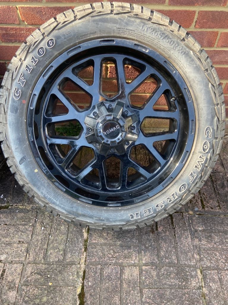 3 Romac Utau 20 " black gloss wheels including 4 tires, wheels and tires in excellent condition like new! Reason for sale vehicle involved in an accident one alloy wheel damaged beyond repair no damage to tyres. Wheels replaced with 22" rims & tires