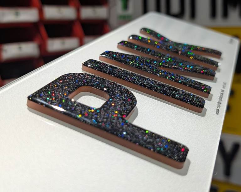 3mm Frosty Pink 4D with Glitter Gel Number plates. Message to order
