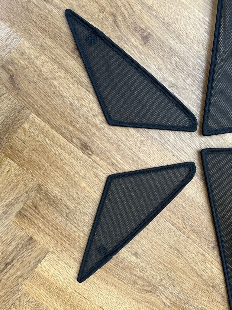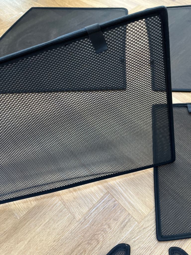 These are made to measure mesh shades to fit an Audi A4 Saloon. Set includes rear passenger, small C pillar triangle and rear window shade set. They just pop into place very easily and will stay in place and continue to provide shade with rear windows part way down. Set comes in a handy storage bag if you need to remove them.