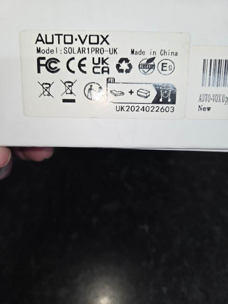 Auto vox solar powered reverse and rear camera.Wireless connection works off solar power easy to install.Very good condition Pick up only.