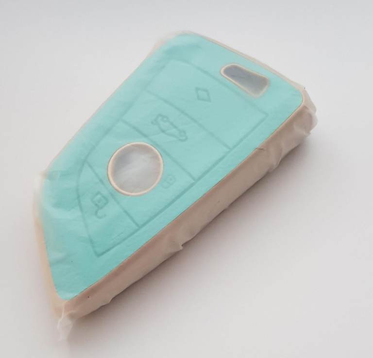 Posting for 5+ monthsBMW TPU & Leather Key Fob Cover – Light Blue with Gold Trim (Blade Smart Key)