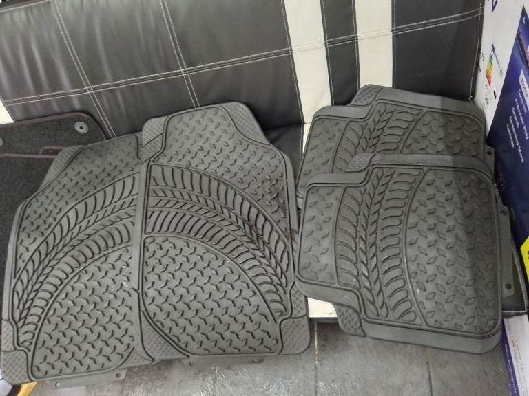 three floor mats for Corsa, the driver's side one is missing, and the four rubber floor mats for any type of car are the complete set, and from BMW completely set