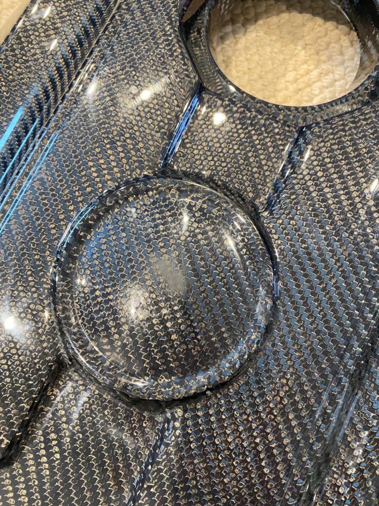 Carbon style engine cover for a Mk6 Golf GTi. This is an aftermarket product. I paid £125 for this on eBay. There are a few scuff marks on parts of it. You will need to remove the rubber fitting mounts/bushes from the original engine cover and install them on this one or buy some new ones.