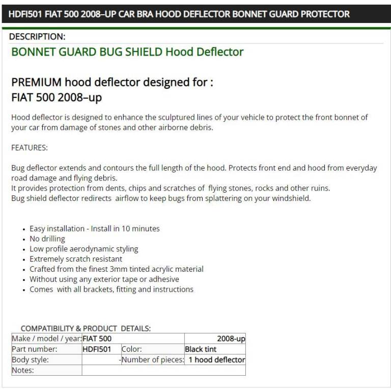 Posting for 11+ yearsFIAT 500 / ABARTH 595 BONNET DEFLECTOR