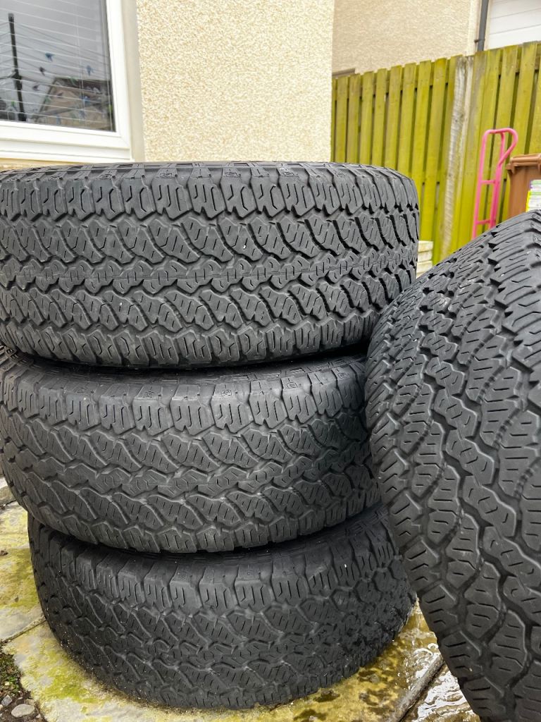 4 no 20 inch genuine Landrover wheels with Grabber AT tyres ; 2 No 4 mm and 2 No 7 mm