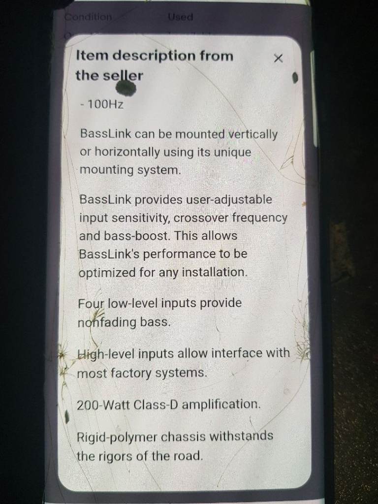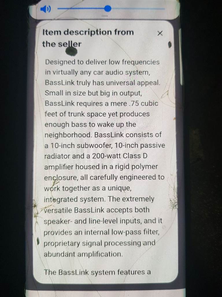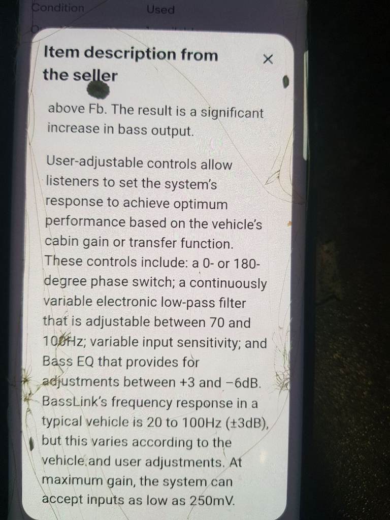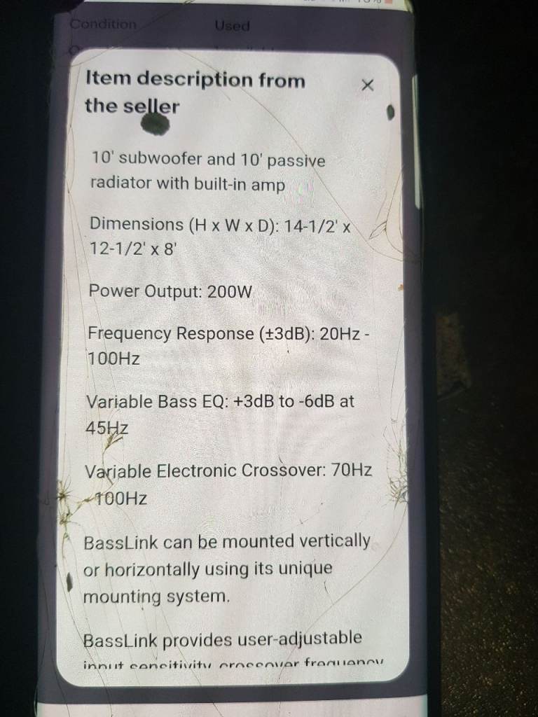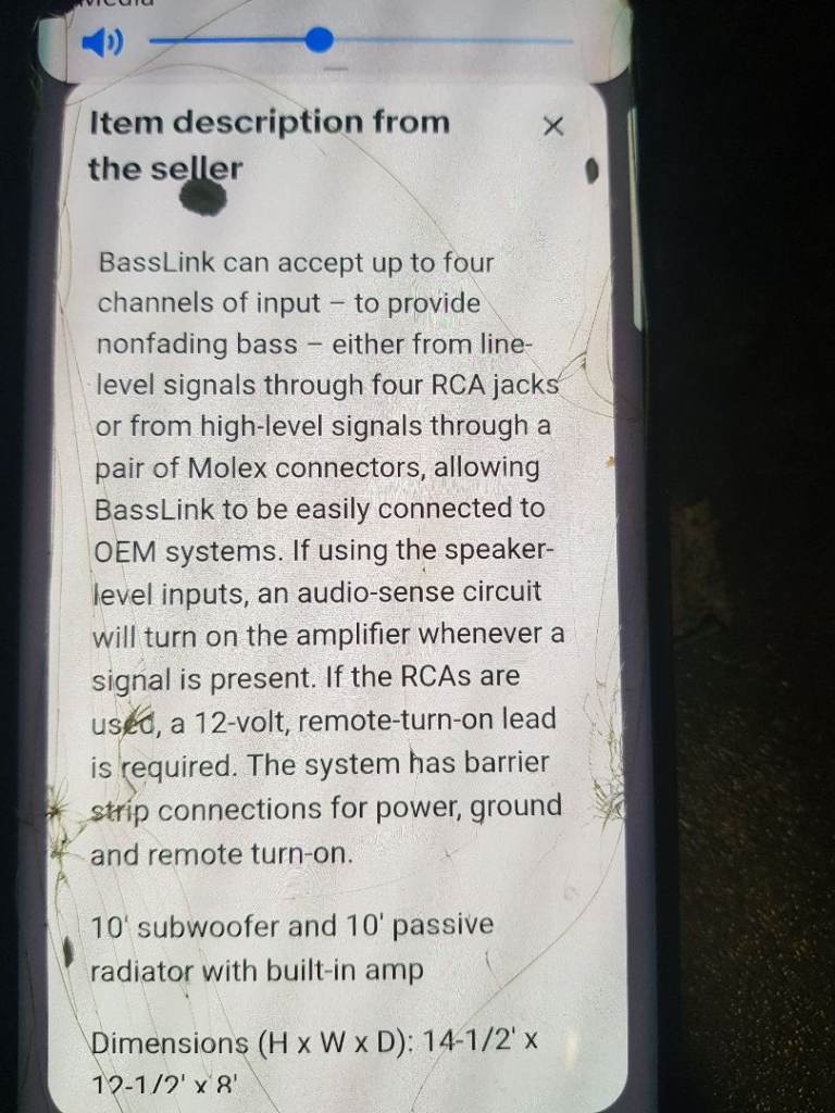 Infinity 10"subwoofer 10" passive radiator with built in amp 200watt class D amplification dimensions (H x W x D)