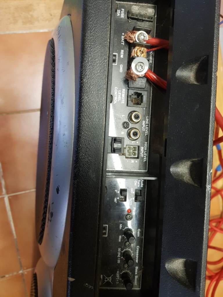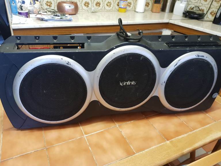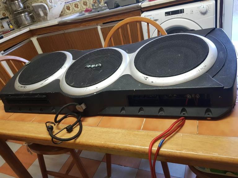 Infinity subwoofer built in amp very powerful slim design lay flat or up behind rear seats amazing sound and lots to play around with