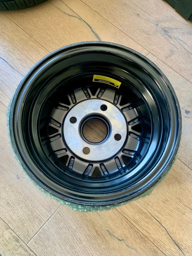 I have one of these available. It has never been fitted to anything, and has no marks of any significance. I believe it is from JBW John Brown Wheels. It is 10” diameter, 6J, 4 x 101.6 PCD, and older Mk 1 centre bore of approx 56mm, not later larger size. Located in Norwich NR3.