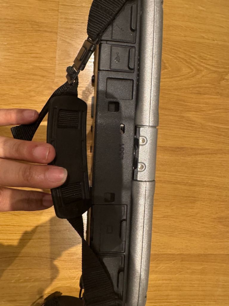 The battery lasts max 1 hour before it needs charging or you can connect to the cigarette lighter via incar plug converter and then you will have constant power for the toughbook