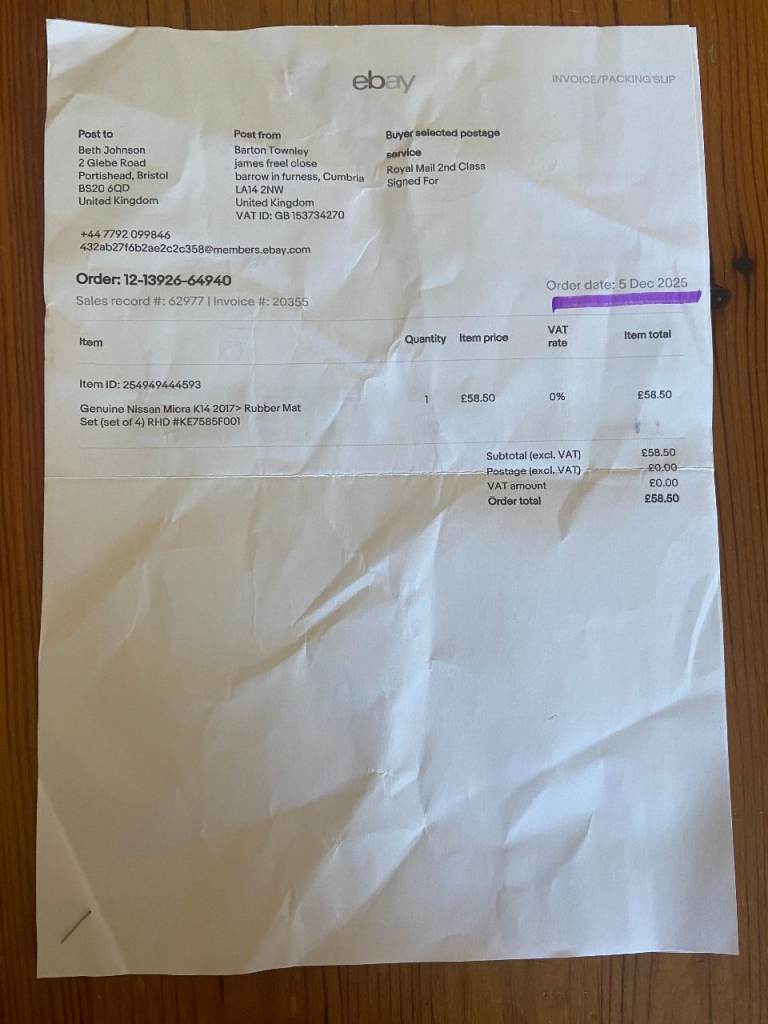 These are genuine Micra rubber mats. Less than 1 months use, before I sold the pig of a car. Grab yourself a bargin. You can see what i paid, thats just for the 4 floor mats, the boot mat was bought separately. Honest advert, they look and feel brand new. must be sold as job lot. Be cheeky and make a very close offer, but not a stupid offer. Need my garage space back, selling on behalf of my daughter.