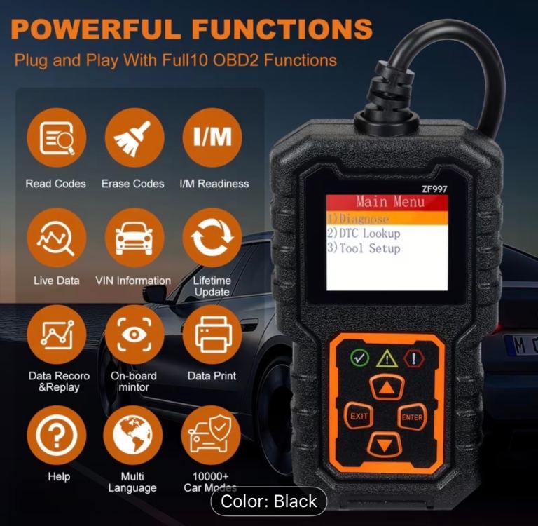This is a multi-functional vehicle fault diagnosis instrument that supports nine OBD II/EOBD standard protocols. It supports plug and