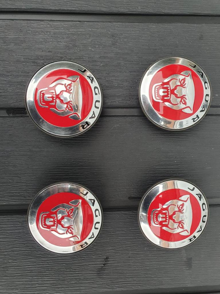 OEM JAGUAR RED CENTRE CAPS for XE, XF, XJ, XK, E-PACE, F-PACE, I-PACE, S-TYPE, X-TYPE. Collection Cardiff Llanrumney or postage