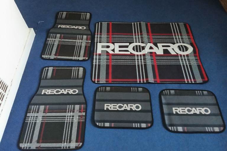 Recaro car mats and boot mat,only took out wrapper to take photos never been used never even been in car,the colours don't suit interior off car as a said brand new.