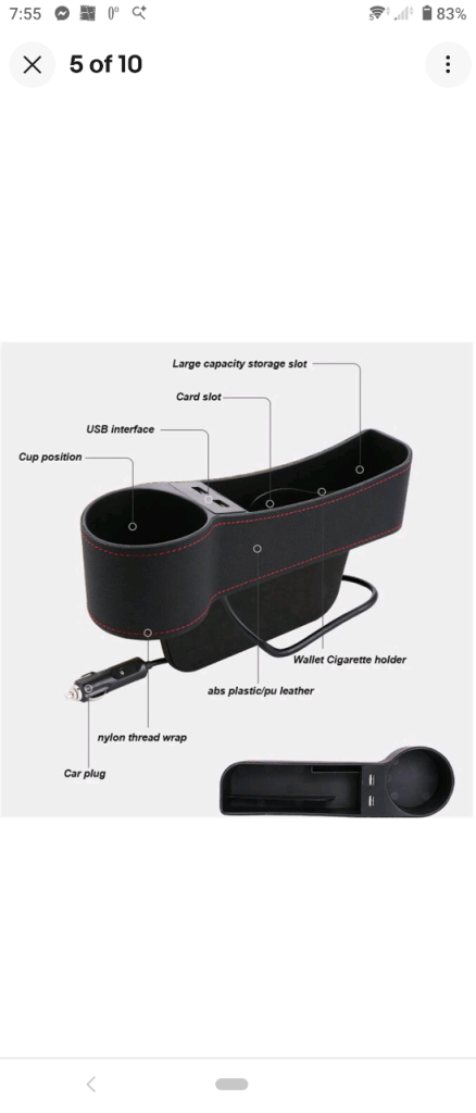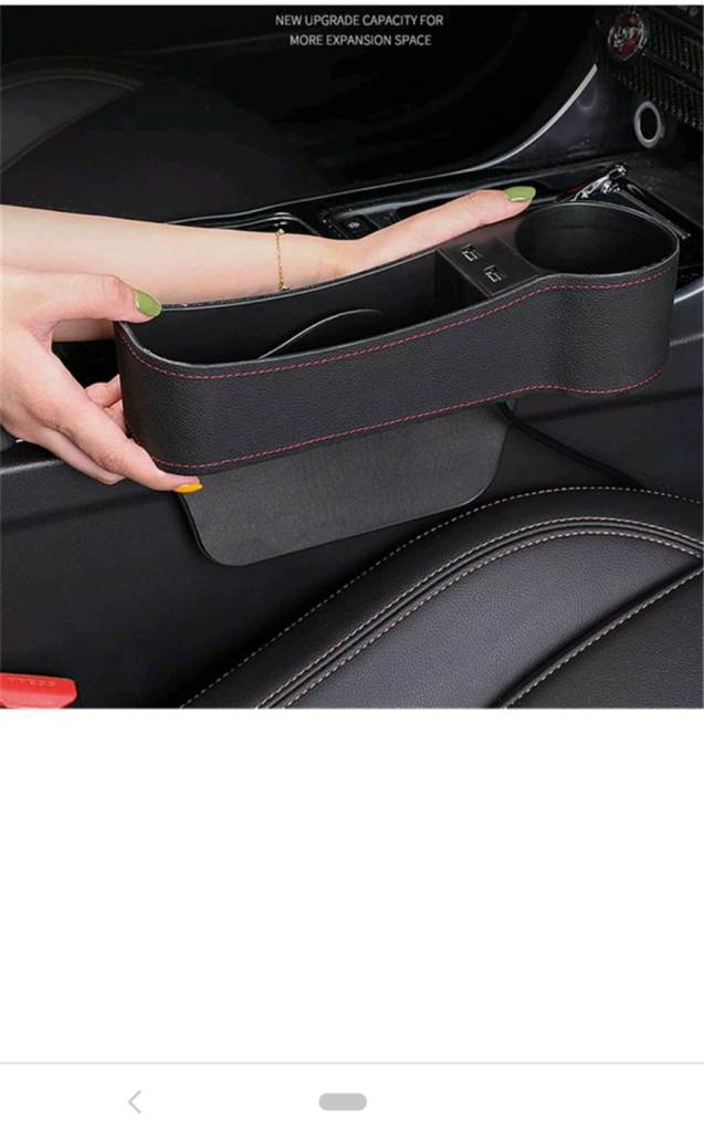 I am selling a car seat gap catcher filler bottle pocket storage box holder organiser plug in to cigarette lighter has 2 usbs 2 cup holders pu leather