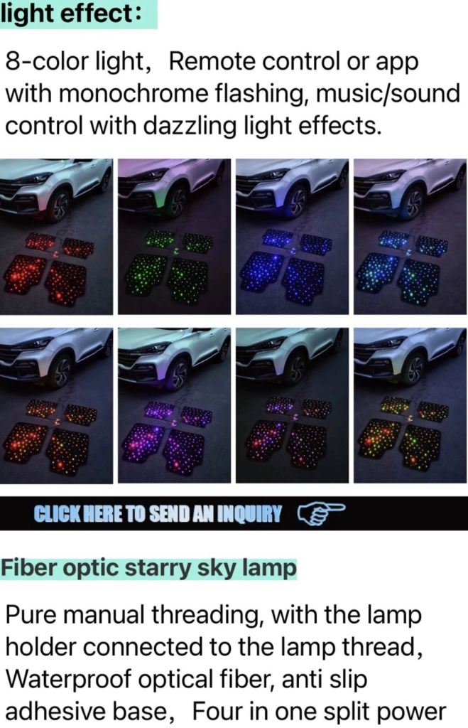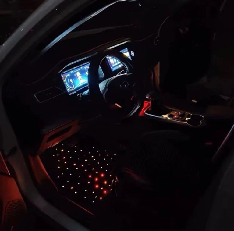 Upgrade your car interior instantly! These Starlight LED Fiber Optic Floor Mats create a stunning starry glow under your feet and react to your music for an immersive driving vibe. Perfect for nighttime drives, car meets, or just making your ride look epic.