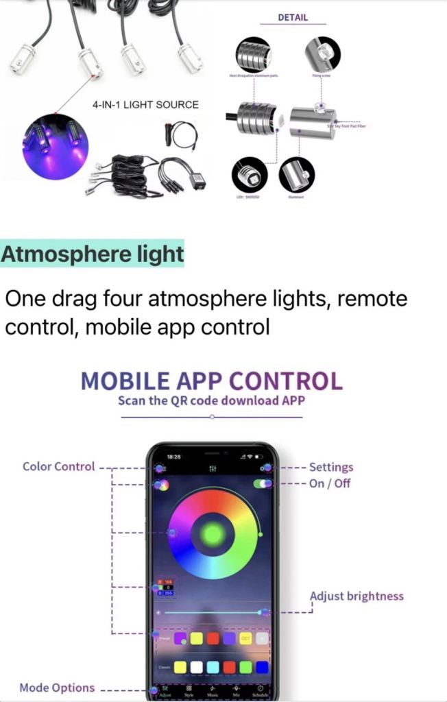 Starlight LED Car Mats – RGB Ambient Interior Lights, Sound Reactive, Set of 4