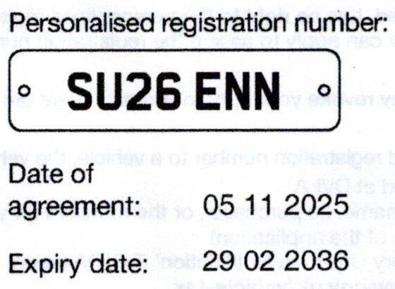 - The correct and legal format for this plate is “SU26 ENN”. Many drivers do rearrange number plates but rearranging them may result in a penalty. We do not recommend or endorse rearranging. You are solely liable for any consequences if you do so.