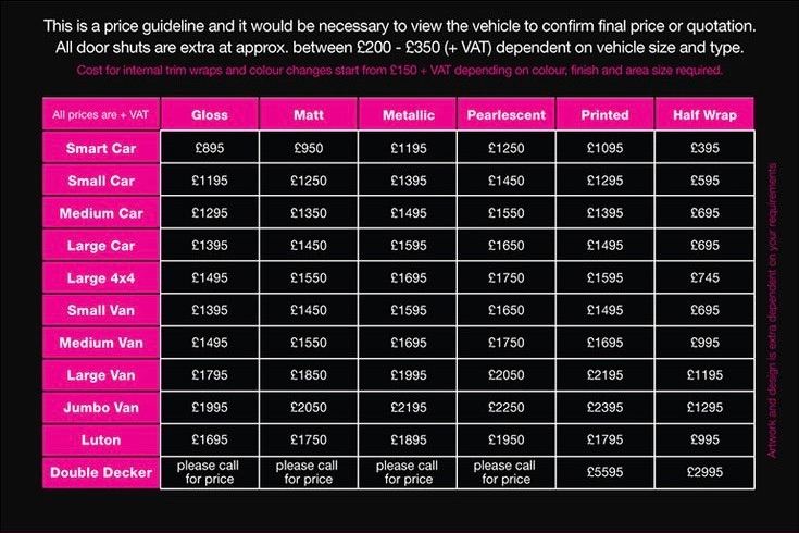 Hi and welcome to Surrey car wrapping,we wrap all types of cars,vans and trucks,we can wrap these to any colour you like,the colours and the price list is on the advert,