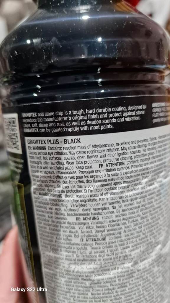 I have for sale on behalf of my friend Upol GraviTex Plus under body coating, stone chip protector in black. Overpaintable.