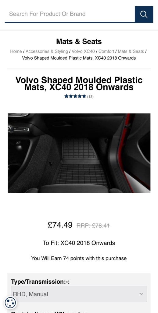 Original Volvo car mats for XC40 / C40 (4 + Boot liner)