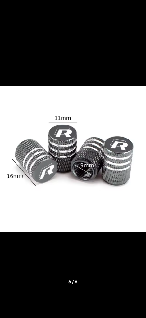R-style design, compatible with various Volkswagen models. Easy screw-on fit for standard tyre valves. Universal fit — suitable with standard valve stems