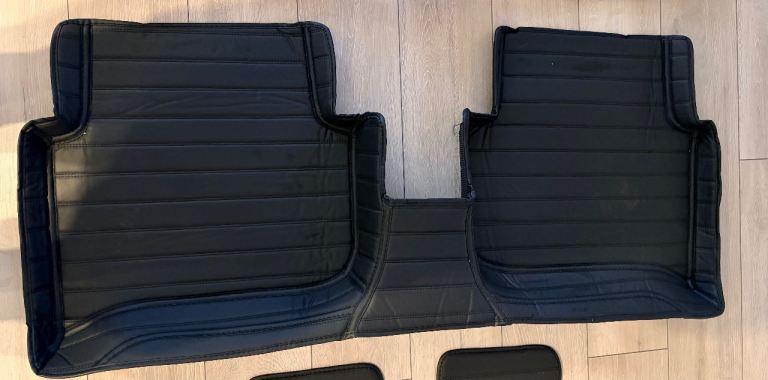 VW Touran 2010-2015 custom fit PU leather waterproof floor mats for 5 or a 7 seater. Barely used. Provide full coverage for side plastics too. Ideal for protecting the car from scruffs and marks