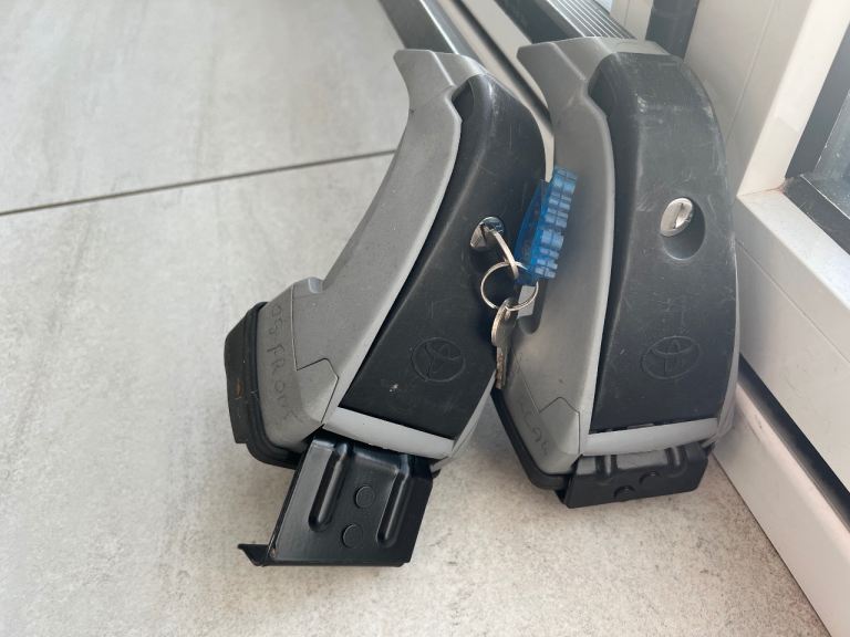 Roof rack/bars x2 to fit Toyota Yaris mk1 (1999-2005). Original Toyota parts with two locking keys. Fits straight on roof. Easy and quick to fit and remove. Buyer collects only.