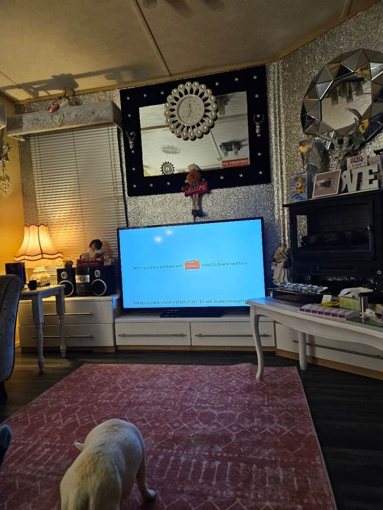 Sleeps 6 2 single beds one double bed and a double bed settee pulls out has a balcony .kitche and shower 2 toilets has club and bar and kiddies park and laundrette cost depends on time of season.100 pounds non returnable deposit when booking also one dog allowed.north wales towyn site called oakfields