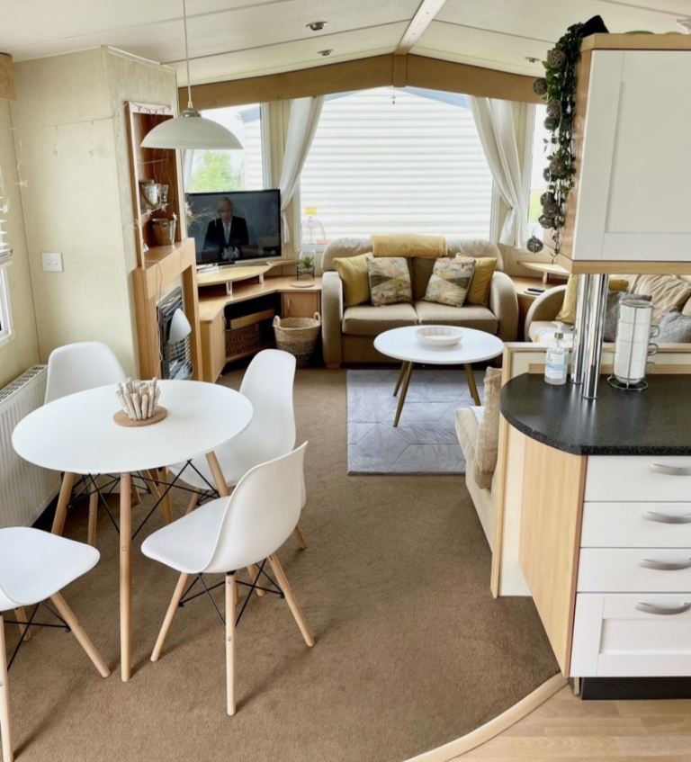 lovely 3 bed caravan ...sleeps 6 people DVDs games , BBQ , garden furniture , wind breaks , newly upholstered seating , new flooring , full size cooker and fridge /freezer ..garden furniture , lots of extras