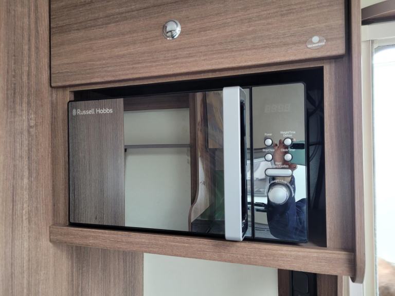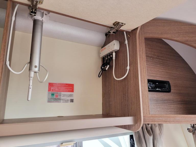 Sunroof; TV Aerial; Fixed Double Bed; Microwave; Cooker; 12V Lighting; External Side Lockers; Blinds; Grill; Mains Hookup; Double Glazing; Separate Shower; Oven; Sink; AM/FM Stereo; Hand Washbasin