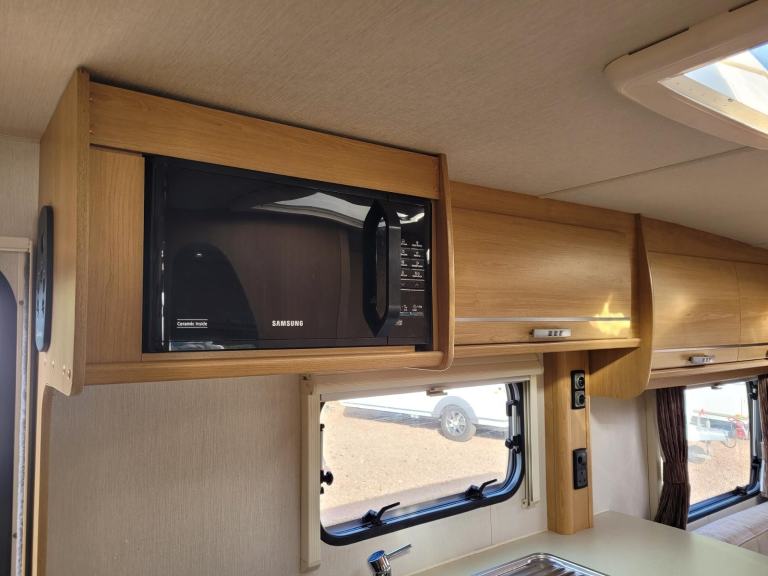 Sunroof; TV Aerial; Microwave; Cooker; External Side Lockers; 12V Lighting; Blinds; Grill; Separate Shower; Mains Hookup; Double Glazing; 240V Lighting; Oven; Sink; AM/FM Stereo; Hand Washbasin