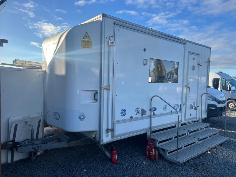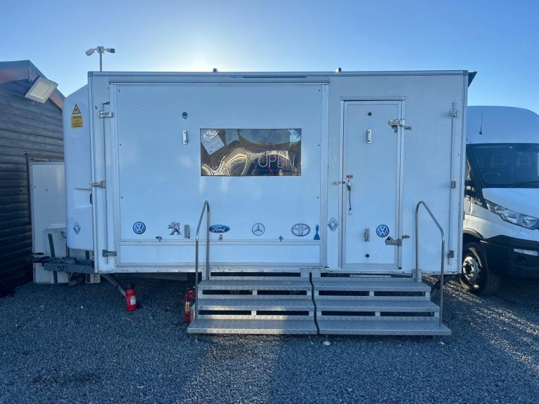 The 16ft Exhibition Trailer Display Box, manufactured by Tow Master in Poland, is a versatile and professional trade show unit designed for events and exhibitions. This unit features stairs for easy access to the display area, making it ideal for showcasing products and services in a visually appealing and organized manner. With its spacious interior and sturdy construction, this exhibition display stand is a reliable choice for businesses looking to make a statement at trade shows and events. It has been used as an office area for the past year. Everything works as should i.e electrics, brakes and doors